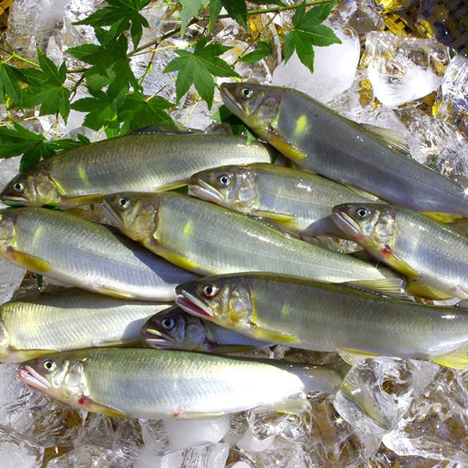 森田城やなでは那須烏山市那珂川や荒川水系の水で育った新鮮なアユやウナギをご堪能いただけます。炭で丹精に絶妙に焼き上げた絶品の塩焼きや、アユの活け造りをお召し上がりください♪