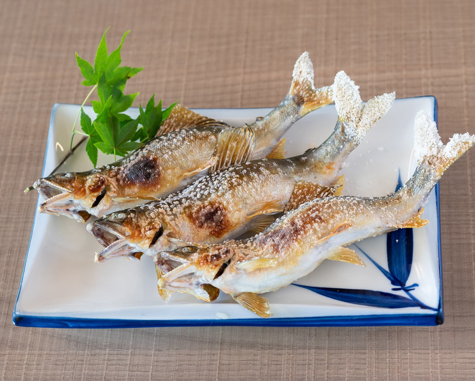 栃木県荒川・那珂川水系のアユをご提供致します。アユは英語で”Sweet Fish”と言われるほど甘く軽やかな口当たりが特徴で愛好家が多い魚です。餌からこだわっているため、臭みが一切なく小骨も気にならず、頭から食べる人も多いです。焼くと柔らかくフワフワで、刺身は身が引き締まっており、極上の食感です。焼きと塩にもこだわっておりますので、ご満足いただけると思います。ぜひご賞味ください♪